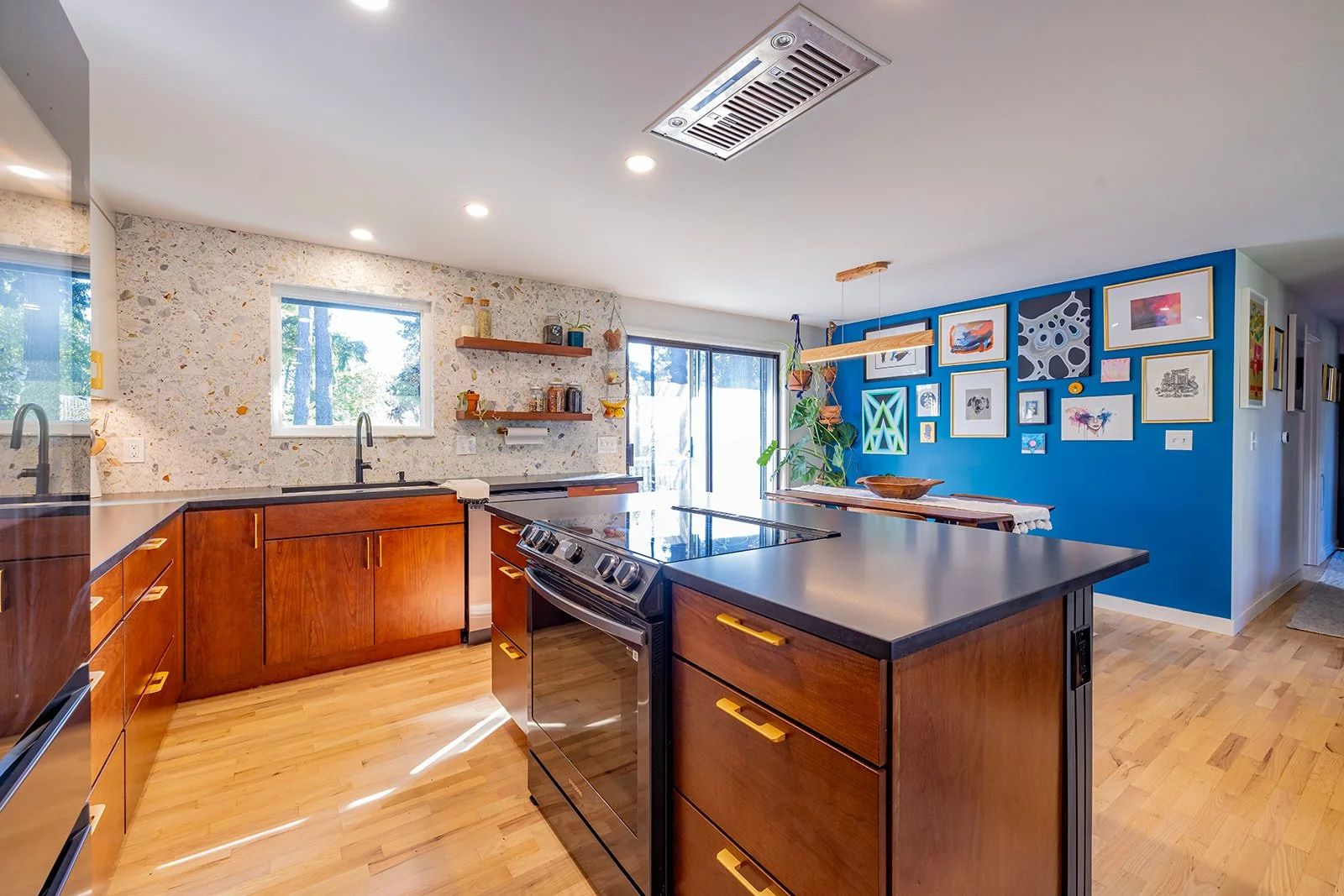 Added flush-to-ceiling, high-quality hood vent to keep space open